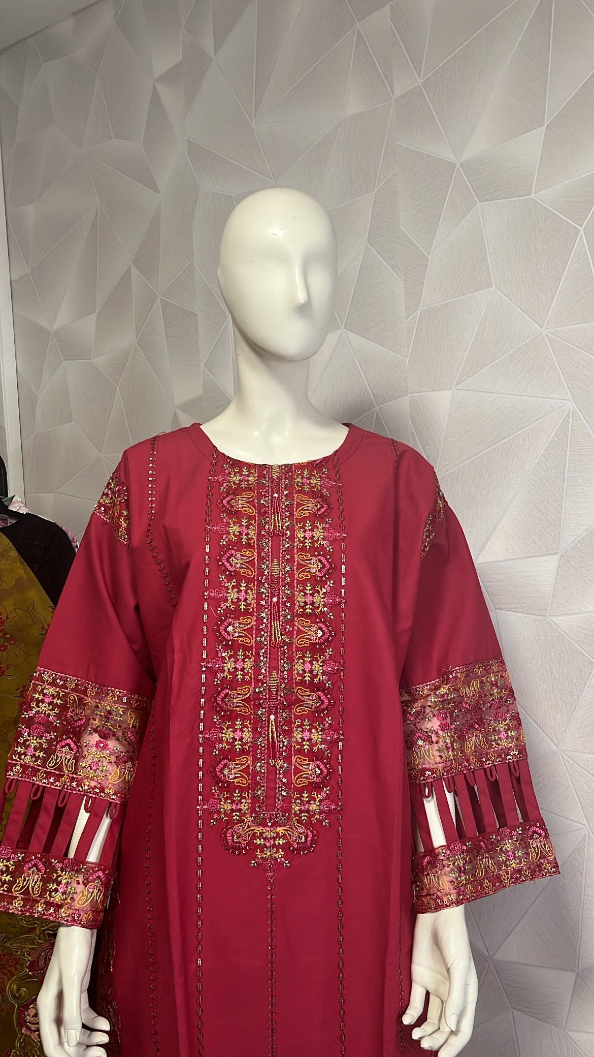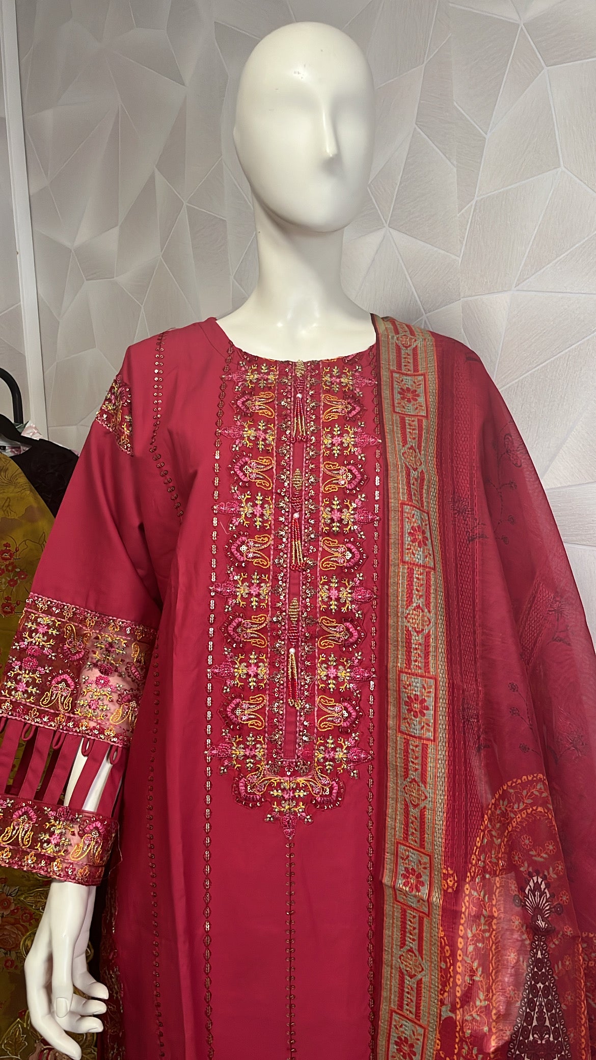 Découvrez le splendide ensemble 3 pièces rose by DAISY CO. Ce magnifique ensemble comprend une tunique bien fournie avec des détails de perles et de motifs sur les manches, ainsi qu'un bas simple avec des motifs et un foulard léger et fleuri. En double coton, c'est l'ensemble parfait pour rester élégante et confortable tout au long de l'hiver.